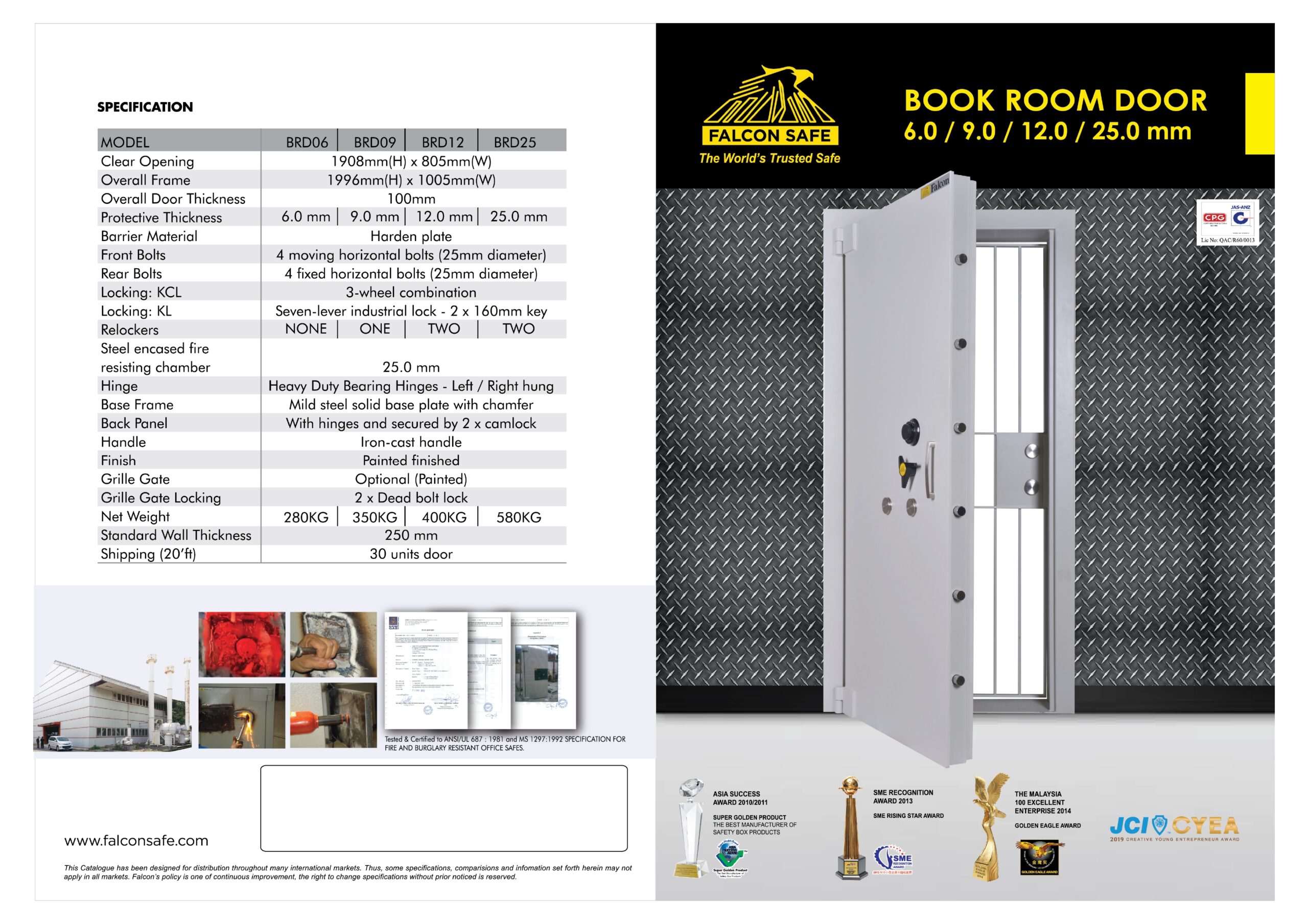 Falcon Book Room Door Series is built with durable steel bars and layers of steel constructions. The premium quality ensures maximum security over thefts, intrusions damages. We guarantee our book room doors will offer amazing protection over valuables stored with a sleek touch of contemporary designs. Our book room door series is loaded with 280 – 550 kg of weight depending on specifications and model. This is to make sure immobility to prevent thefts. Our book room door normally comes with a grille gate with paint finish. Our book room door series is packed with essential features for maximum protection over vaults. The door series resembles our sophistication in safe & lock engineering & technology, longevity and elegance.
