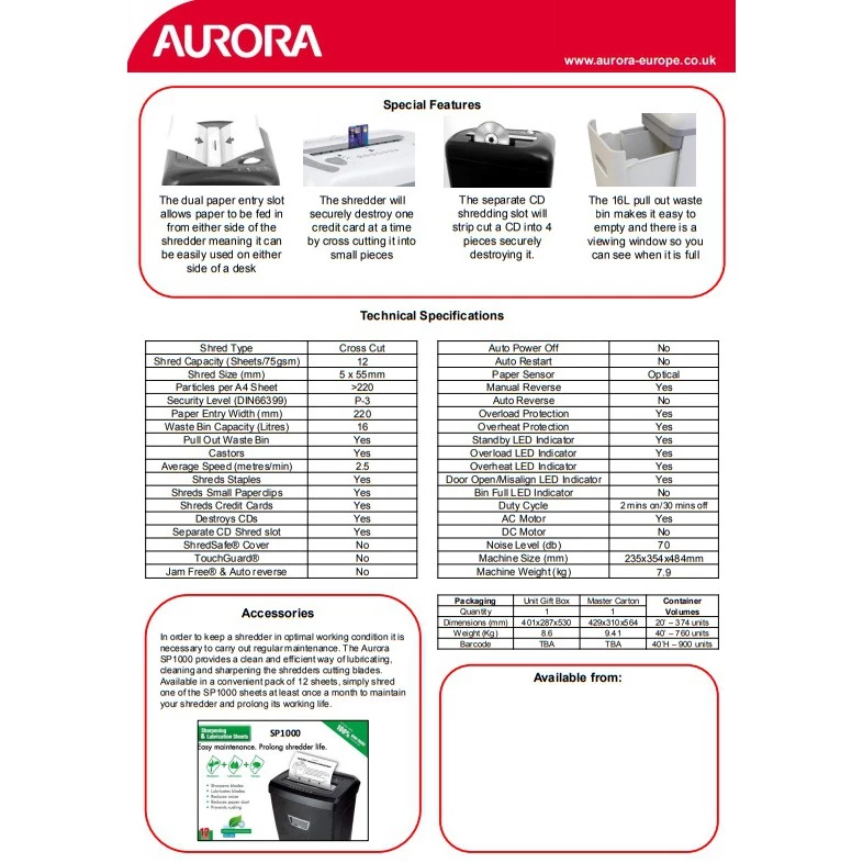 - Sheet Capacity : 12 Sheets (75gsm / A4)