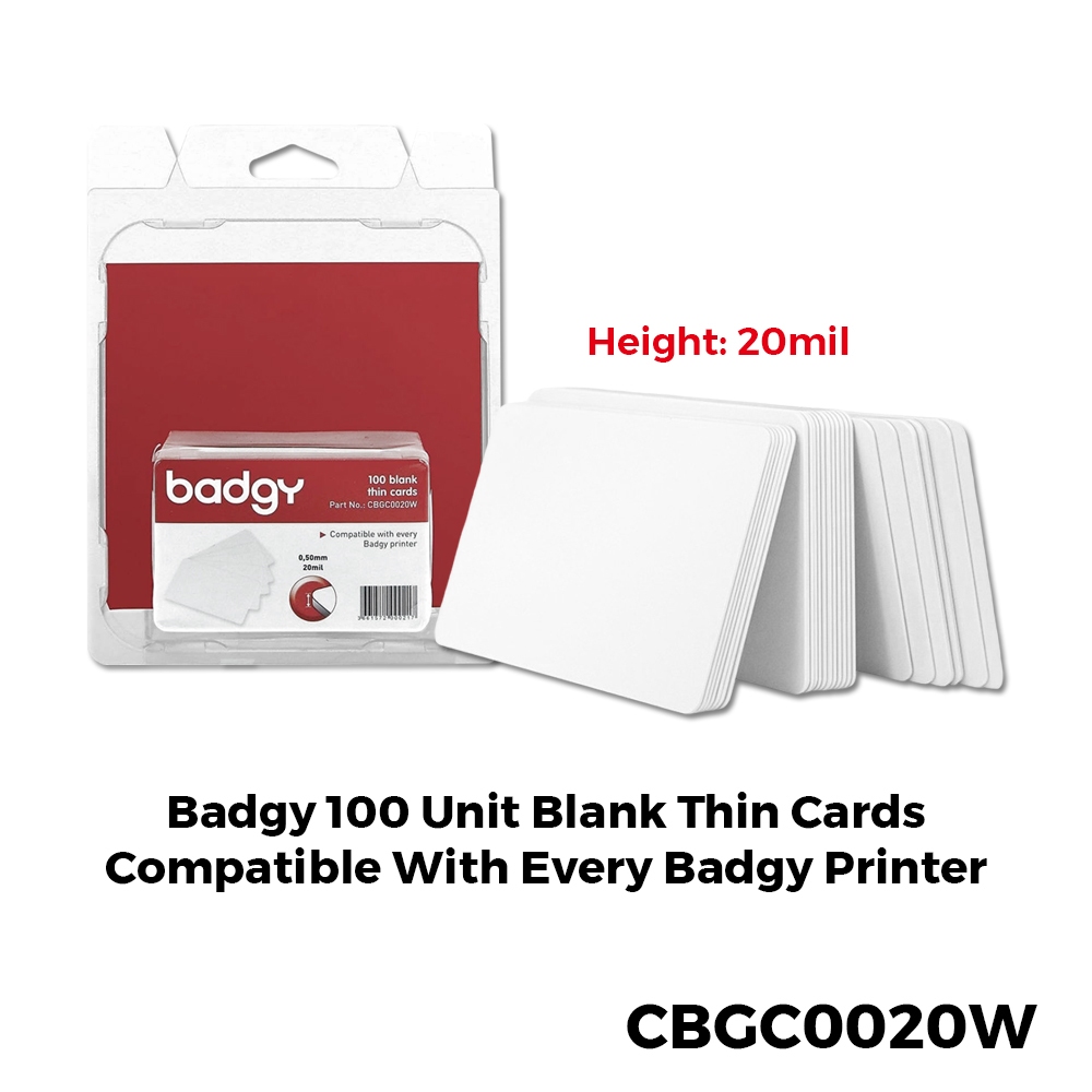 The BADGY Thin PVC Card CBGC0020W 20mil (0.50mm) is a pack of 100 thin blank white PVC cards designed for users who want a lighter, more flexible alternative to the standard “credit card” thickness. While they share the same dimensions as a regular bank card, these are about 30% thinner, measuring just 20mil (0.50mm).