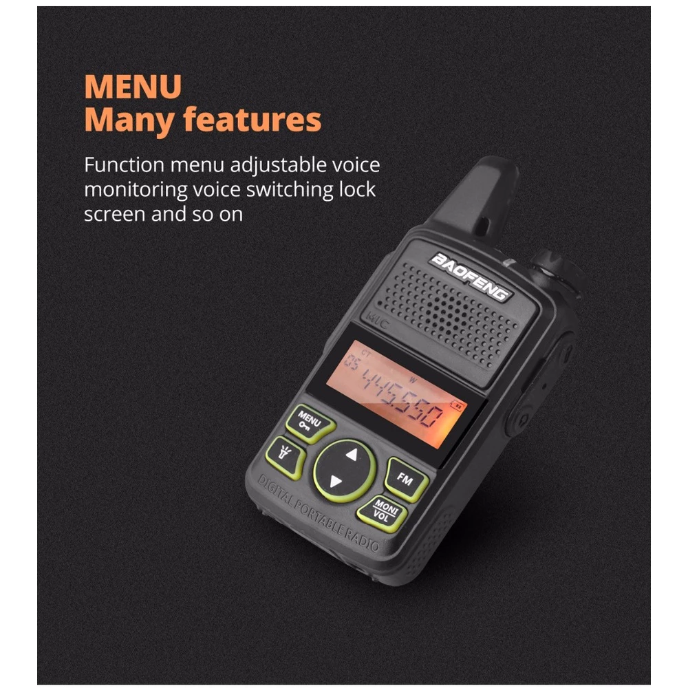 The BAOFENG BF-T1 is an ultra-slim, “mini-pocket” walkie talkie designed for those who need communication that is both discreet and extremely portable. Smaller than a standard smartphone and roughly half the thickness of a typical radio, it slides easily into a shirt pocket or clips onto a lanyard without being bulky. BAOFENG Walkie Talkie BF-T1 is a favorite for hospitality staff, retail workers, and event planners who need to stay connected while maintaining a professional appearance.