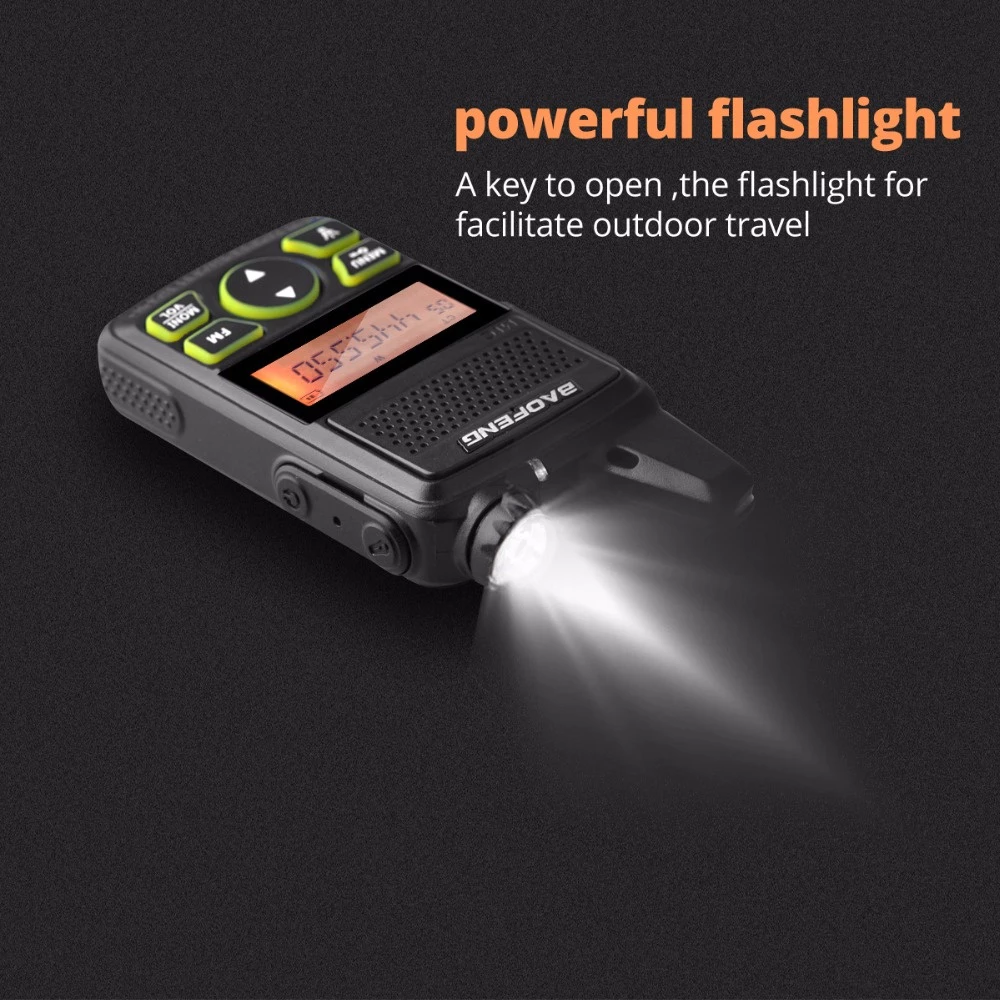 While it is small, BAOFENG Walkie Talkie BF-T1 doesn’t skip on essentials, offering a built in LED flashlight, a broadcast FM radio for listening to news or music, and an emergency SOS alarm button.