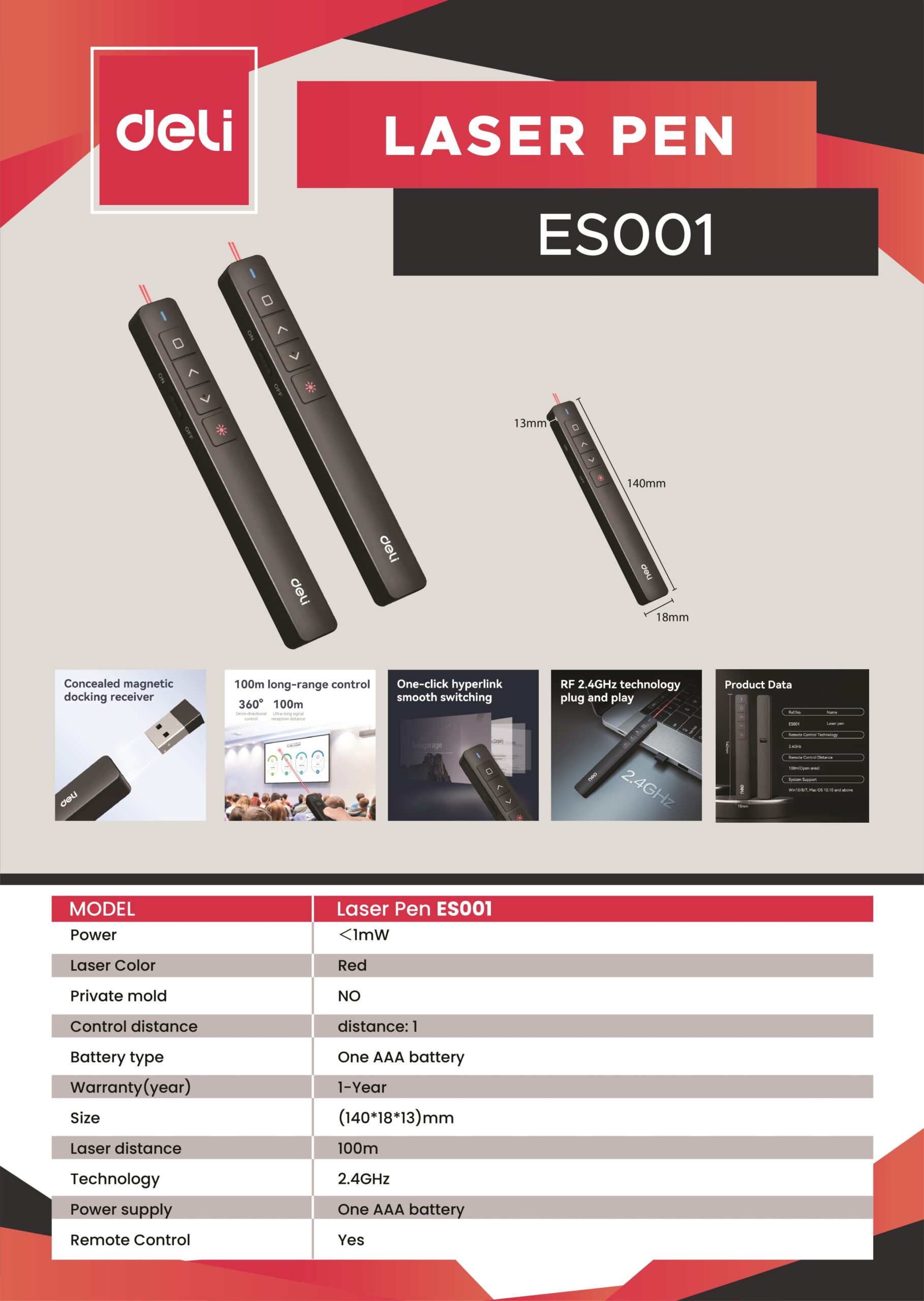 1. Is the laser safe for use in classrooms? – Yes, the ES001 is a standard presentation laser. However, you must never point it at eyes (human or animal) or reflective surfaces, as direct exposure can cause permanent eye damage.