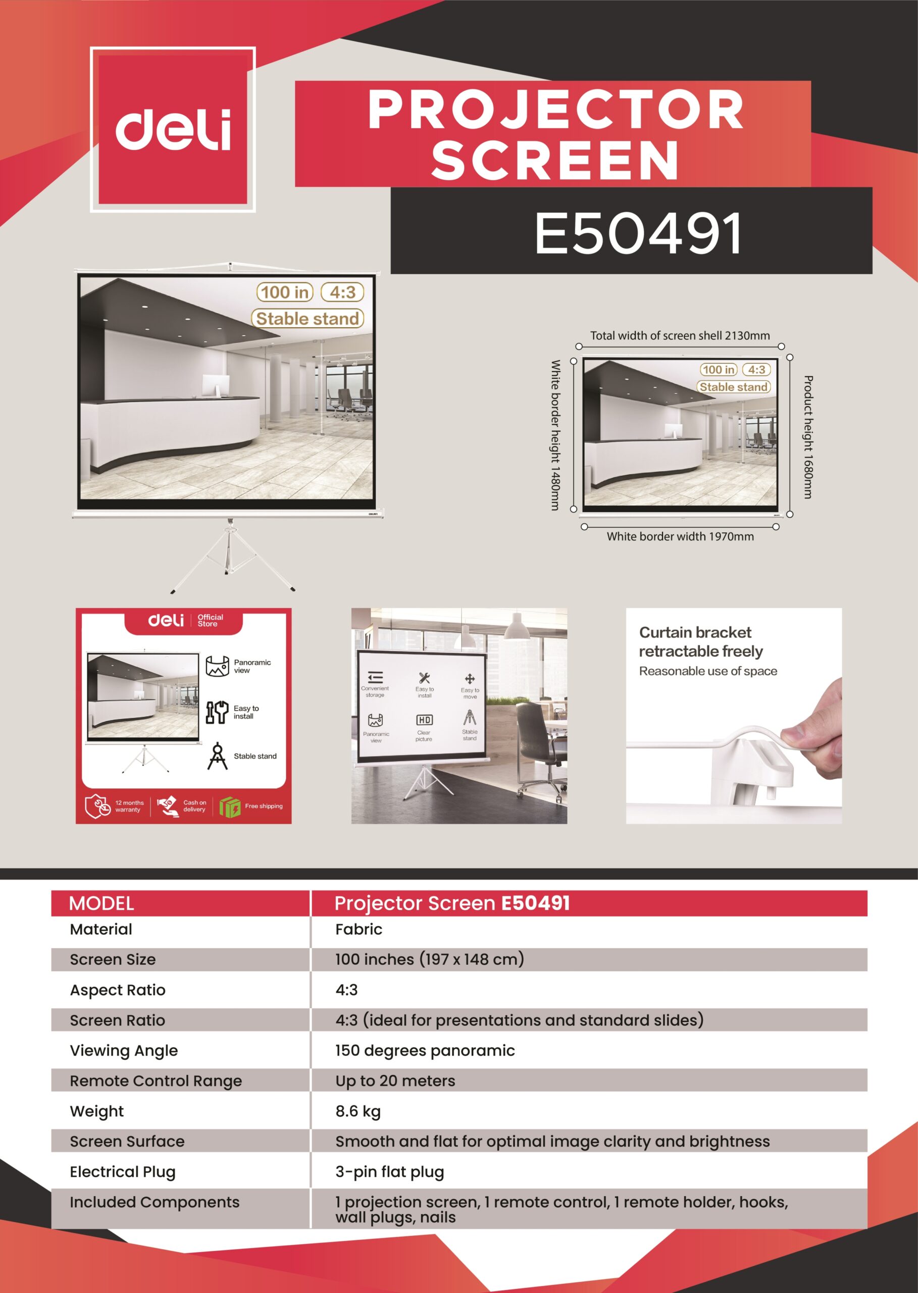 DELI Tripod Projection Screen