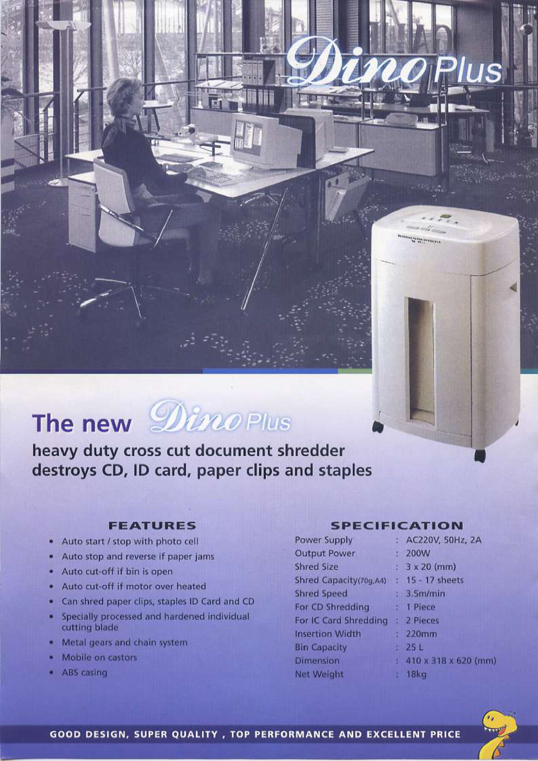 Built for performance and convenience, the DINO Paper Shredder PLUS offers a perfect balance of speed, security, and capacity, a dependable shredding partner for offices looking to manage paperwork efficiently and keep sensitive information safe.