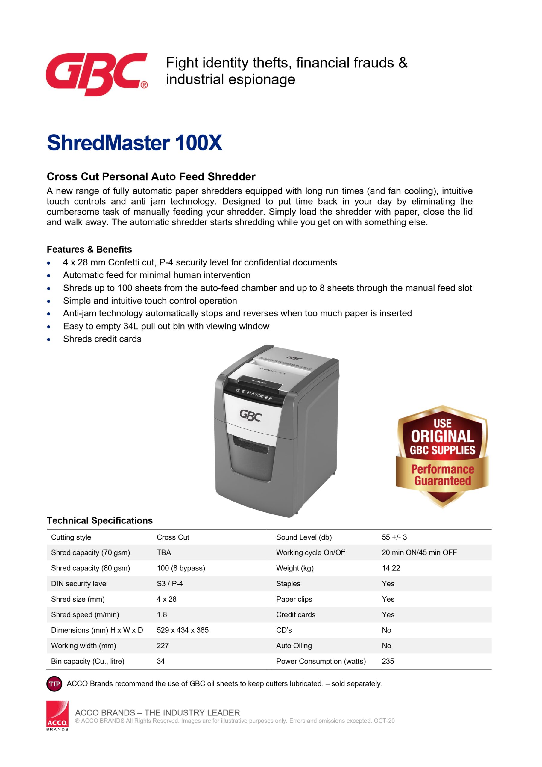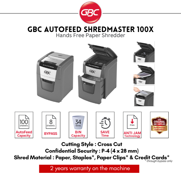 GBC Auto Feed Paper Shredder Machine ShredMaster 100X (Cross-Cut 4x28mm)