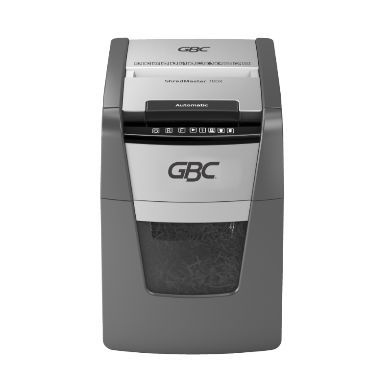The GBC ShredMaster 100X is a highly efficient auto-feed paper shredder machine designed to streamline document security for home offices and small businesses. Its standout feature is the “Stack, Shut, and Done” technology, which allows you to load up to 100 sheets into the auto-feed chamber. The machine then automatically shreds the entire stack into secure 4x28mm cross-cut particles (P-4 Security) while you focus on other tasks.