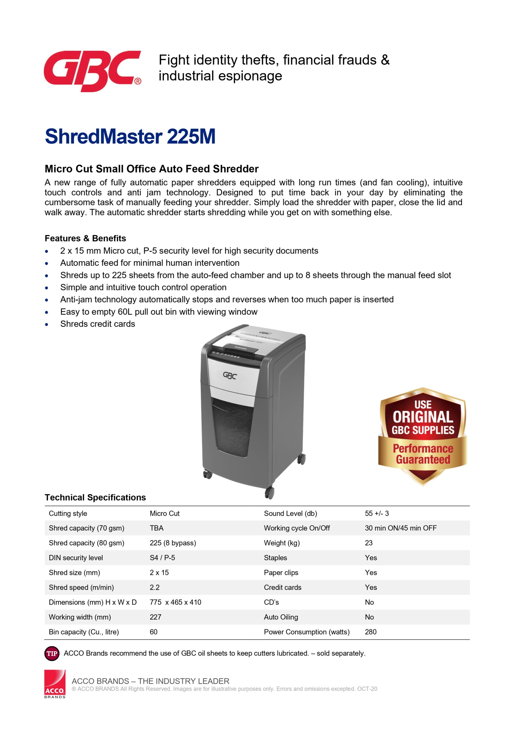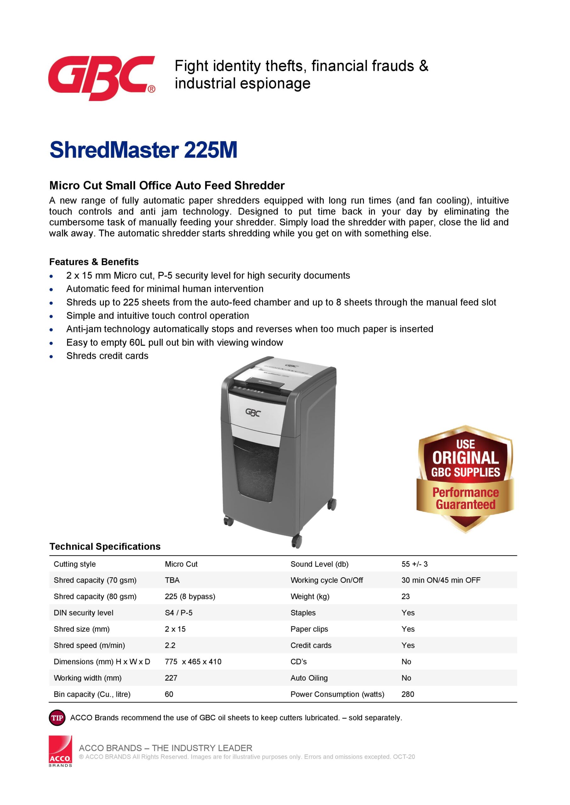 • Model : GBC ShredMaster 225M