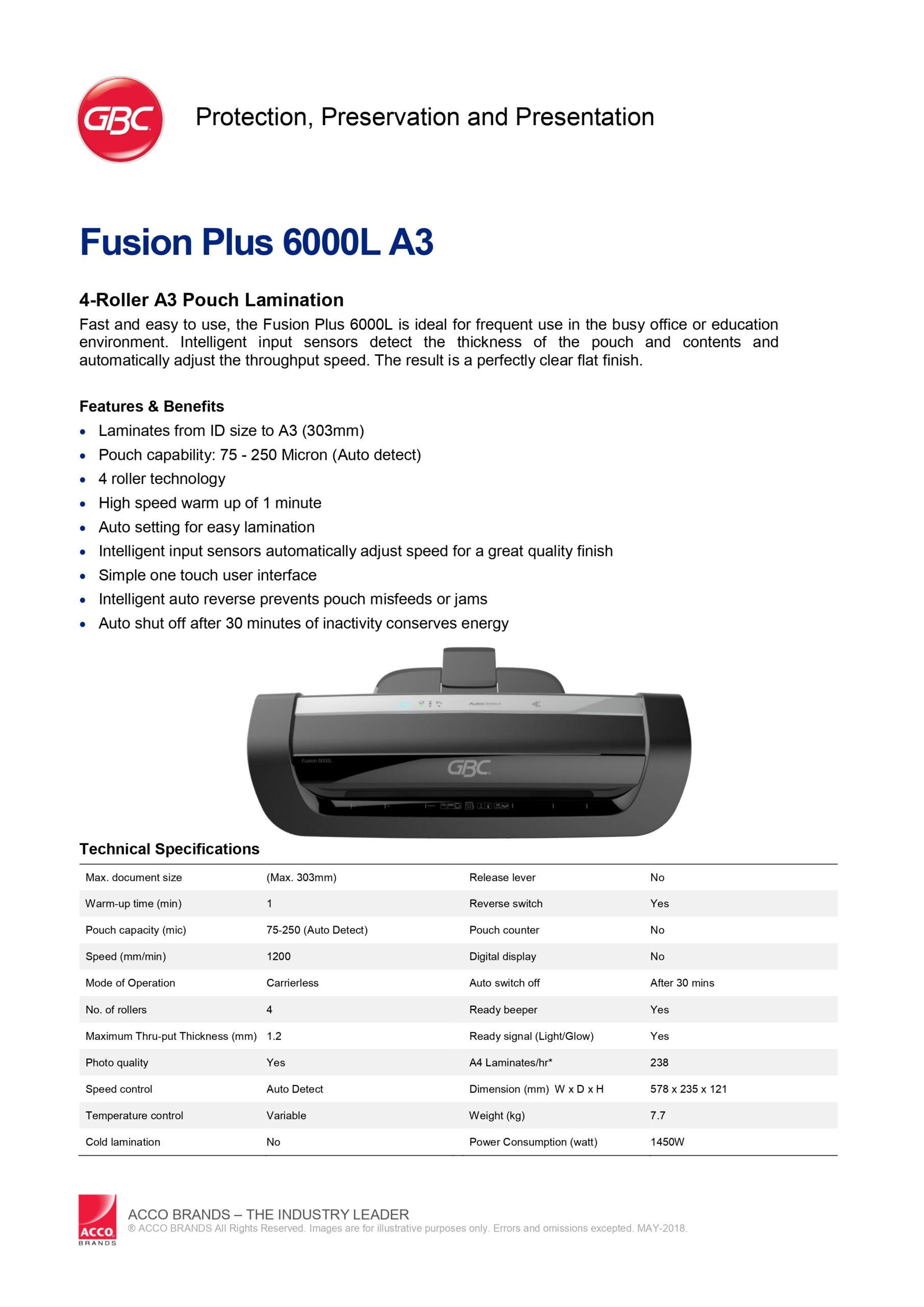 - Auto setting for easy lamination
