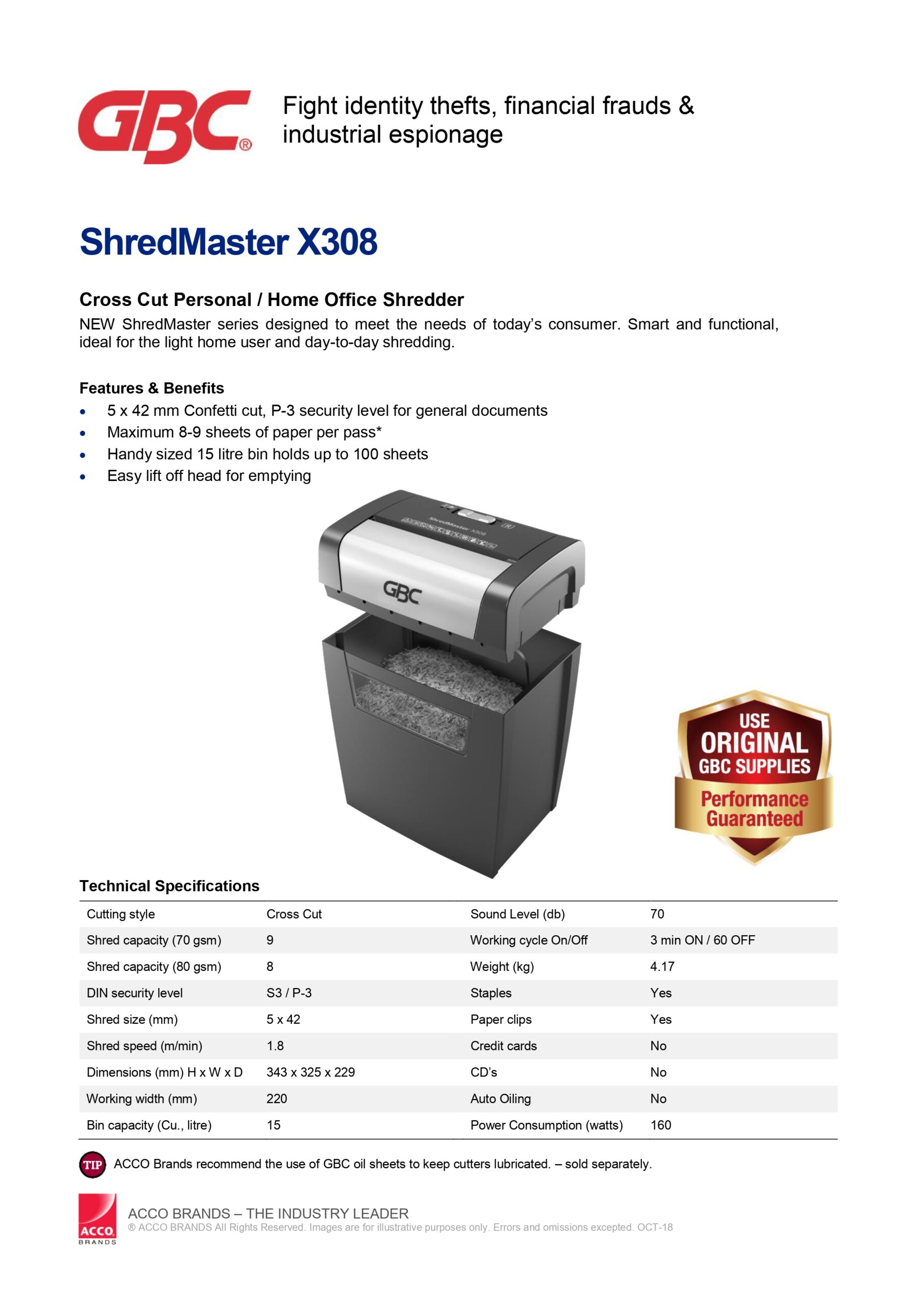 - Model : GBC ShredMaster X308