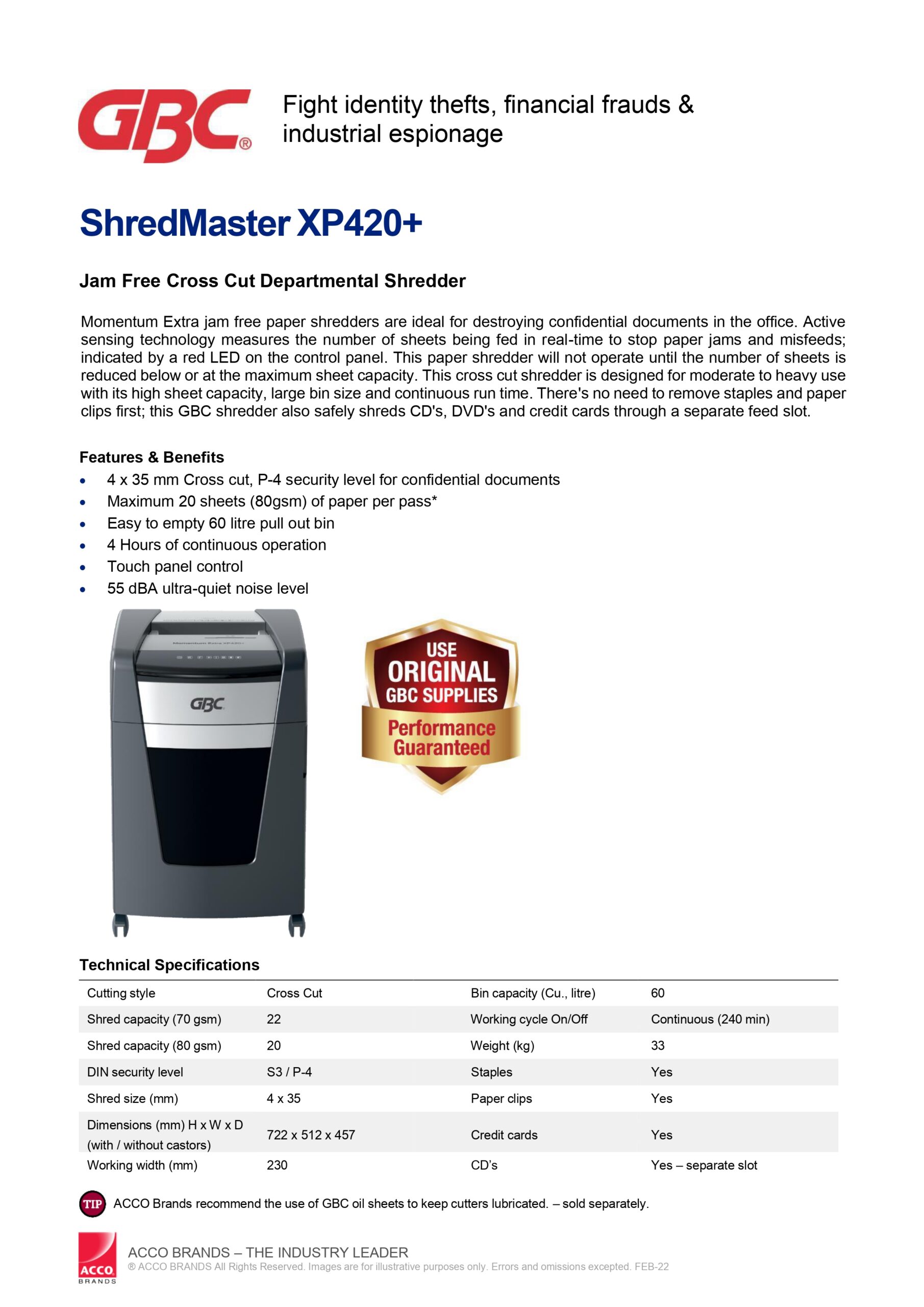 - Model : GBC ShredMaster XP420+