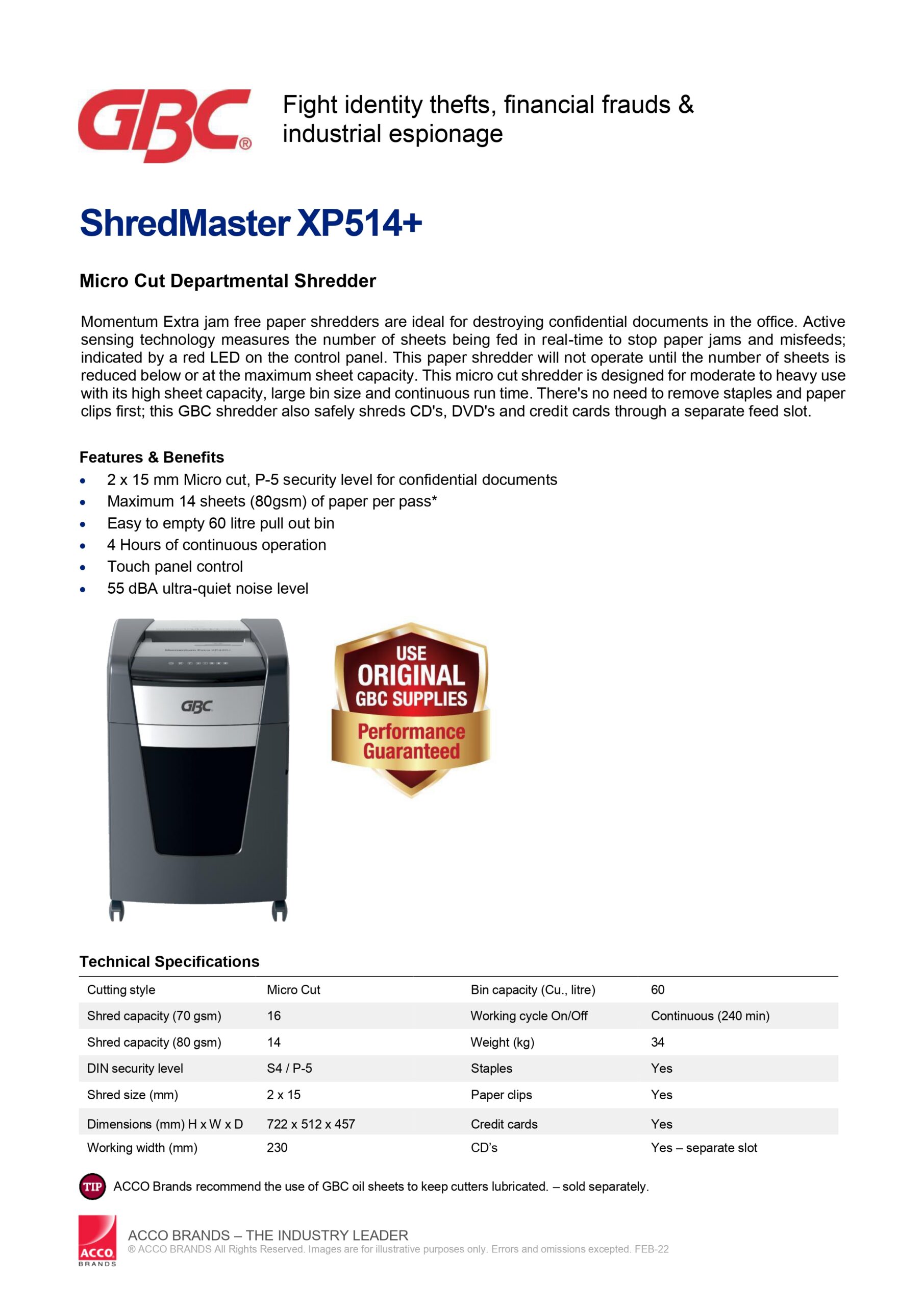 - Model : GBC ShredMaster XP514+