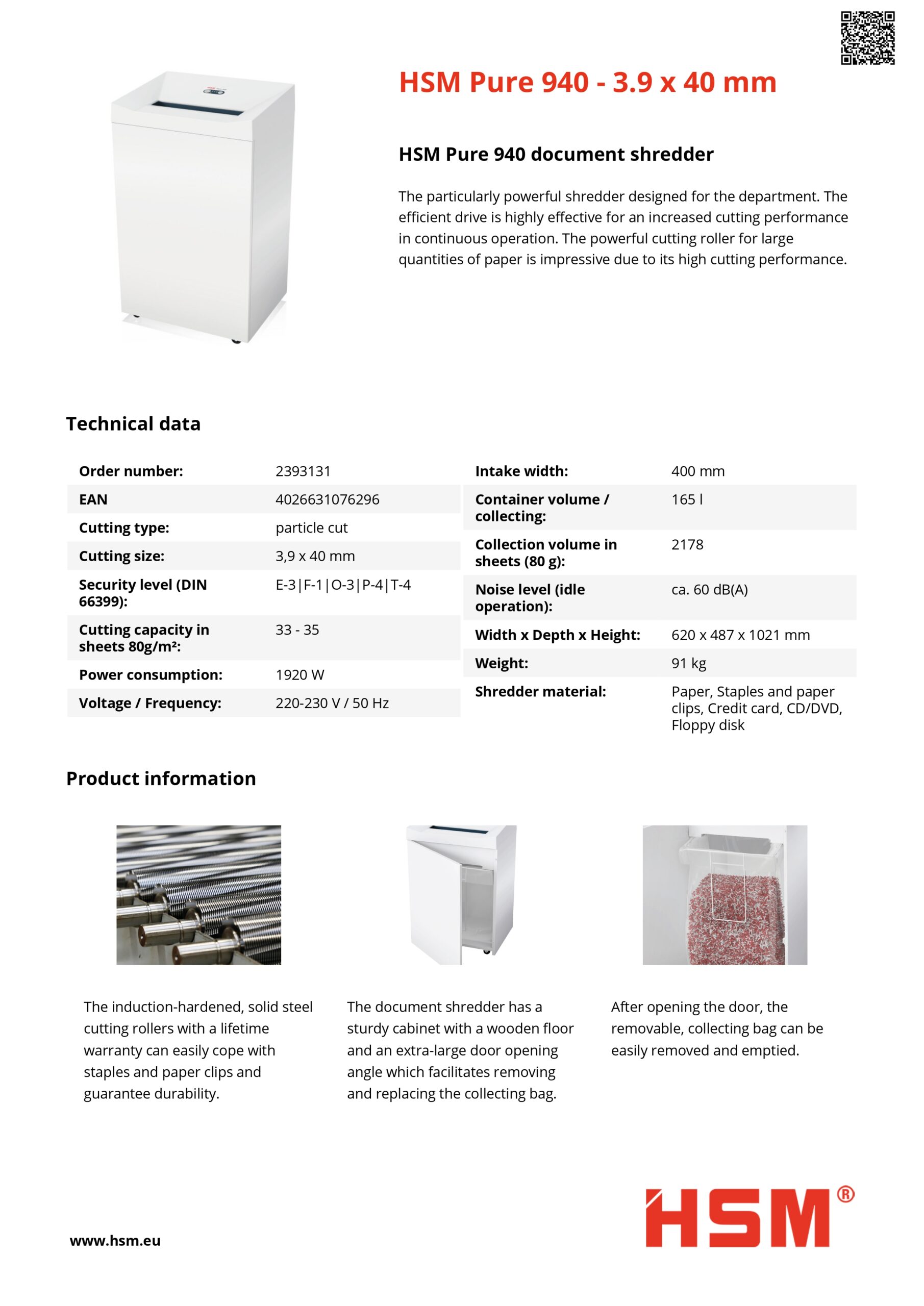 - The induction-hardened, solid steel cutting rollers with a lifetime warranty can easily cope with staples and paper clips and guarantee durability.