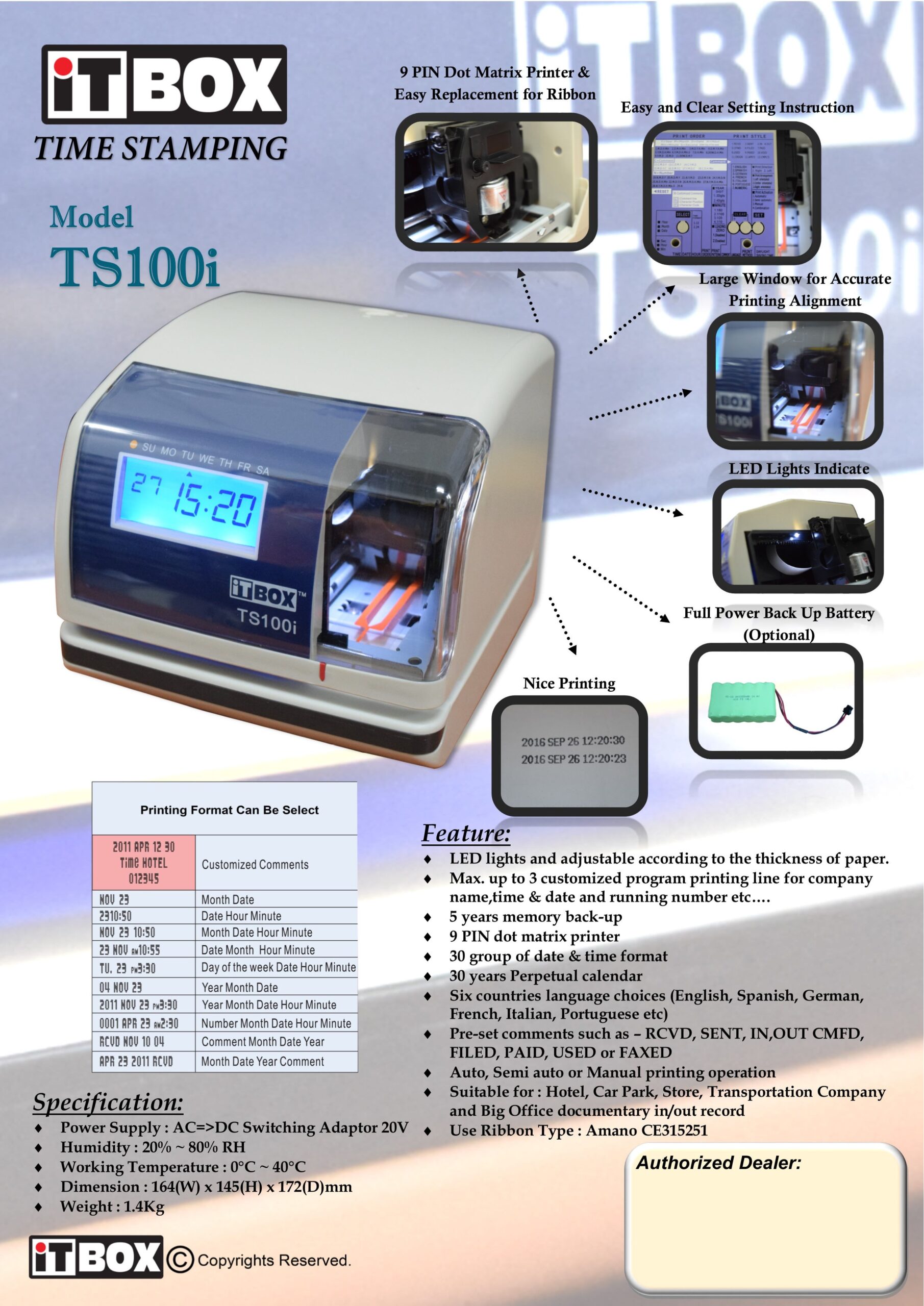 - Vertical Printing 12h / 24h printing selectable